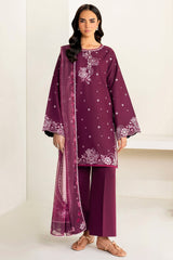 Embroidered Lawn Front & Side PanelsEmbroidered Lawn SleevesDyed Lawn Back (1 Yard)Digital Printed Chiffon Dupatta (2.75 Yards)Dyed Cotton Trouser (2.70 Yards)