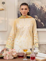 Duppata: Digital Printed Bamber Chiffon Embroidered Cut-Work